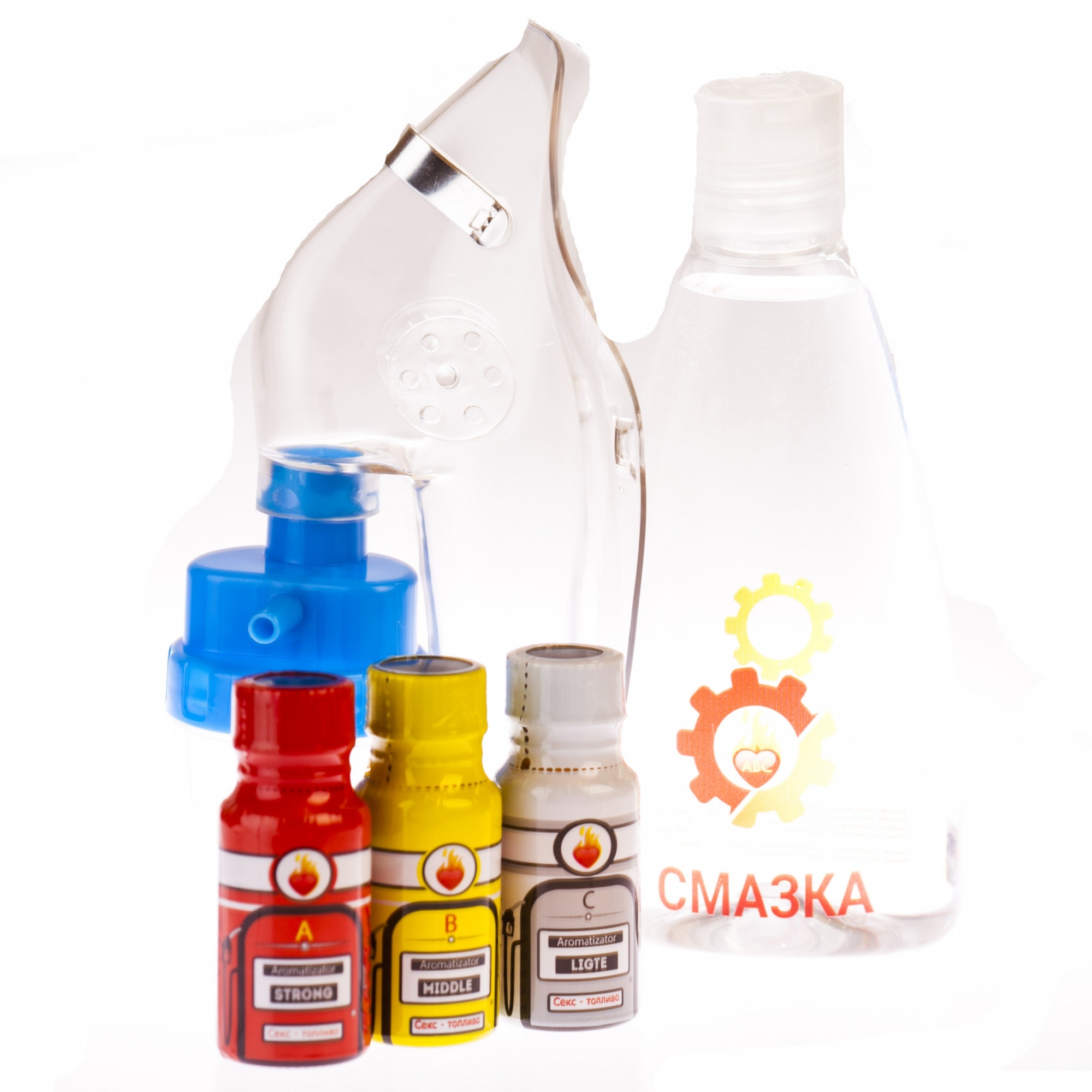 В набор входят Попперс А 15 мл, Попперс Б 15 мл, Попперс Ц 15 мл, Маска для Попперс и Интимный гель.